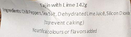 Chilli Peppers, Sea Salt, Dehydrated Lime Juicé, Silicon Dioxide (to prevent caking) No artificial colours or flavors added.